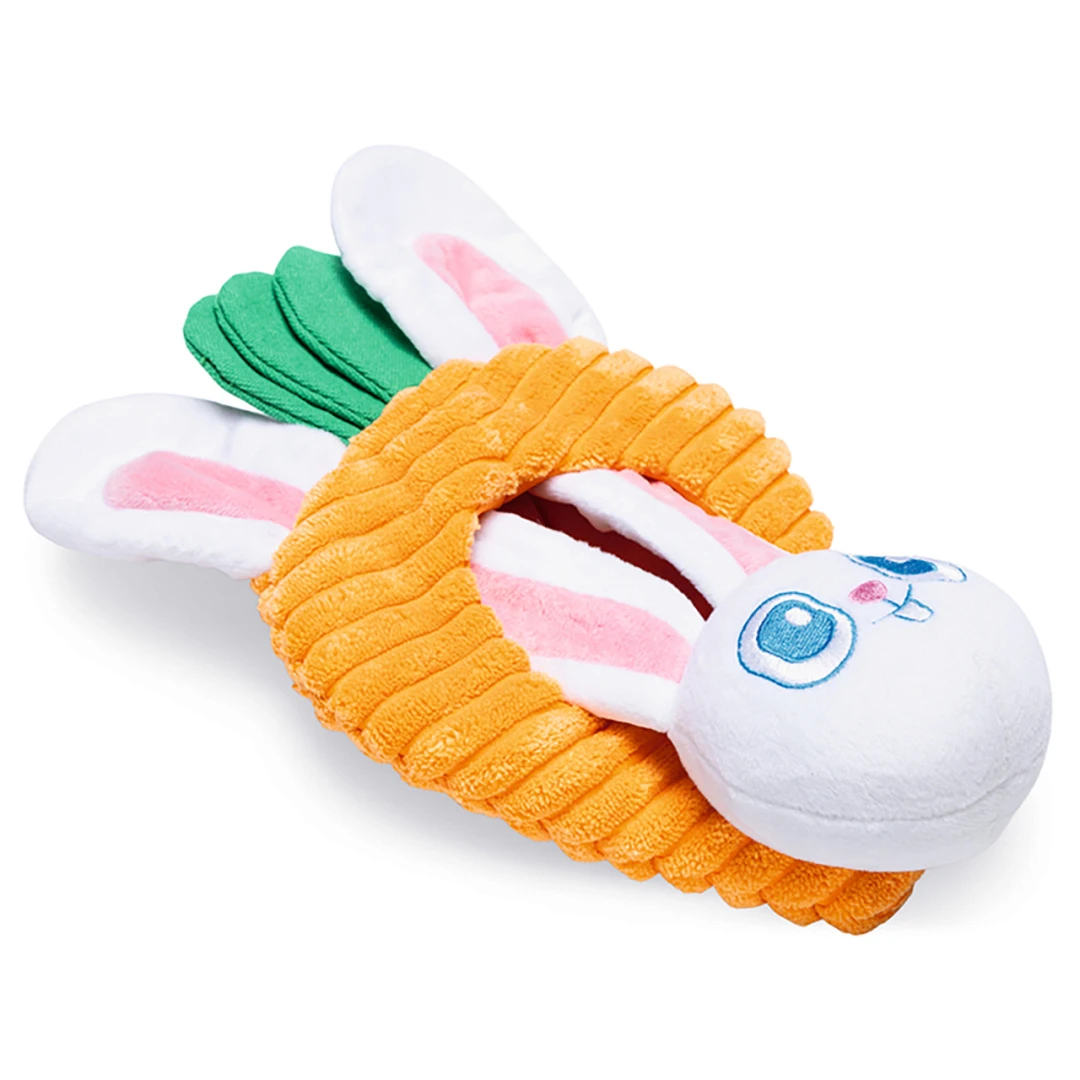 Op zoek naar een grappig paasspeeltje voor jouw hond? Dan is deze Beeztees Paashaas Knabbel iets voor jou! Dit pluchen hondenspeeltje is namelijk een wortel en een konijn in één. Om dit speeltje voor honden extra leuk te maken, kan de paashaas zelfs uit de wortel worden gehaald! Daarnaast zit er in de wortel knisperfolie en bevat het hoofd van het konijn een piep, waardoor jouw hond extra aangetrokken wordt om met dit speelgoed te spelen.