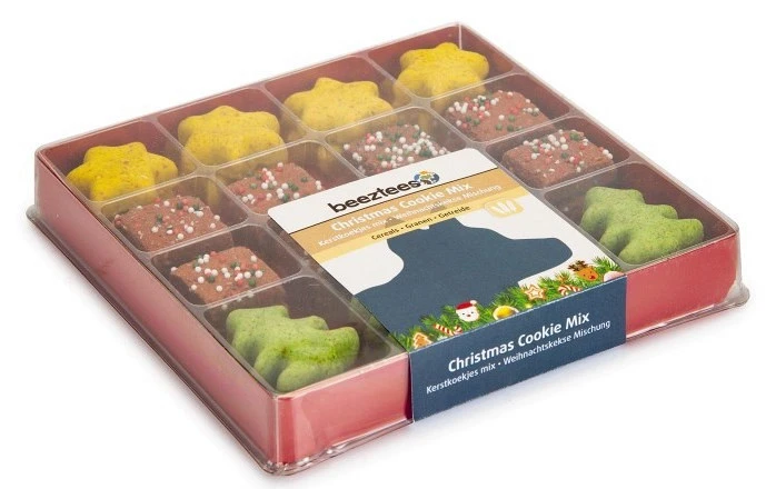 Kerstkoekjes mix; een heerlijke box vol met lekkernijen voor jouw hond. Deze box bestaat uit een mix van een aantal koekjes in verschillende vormen, geheel in de sfeer van de feestdagen.