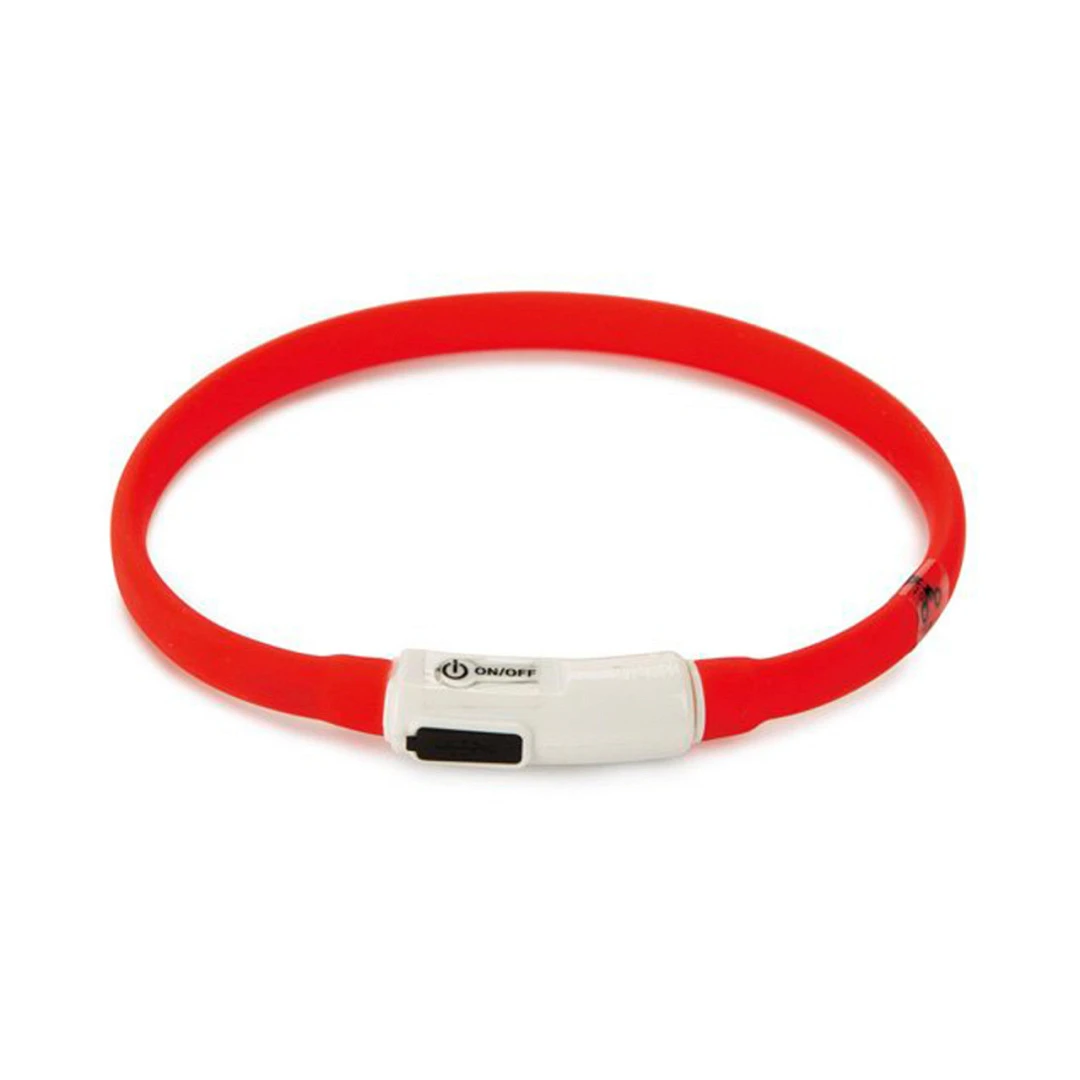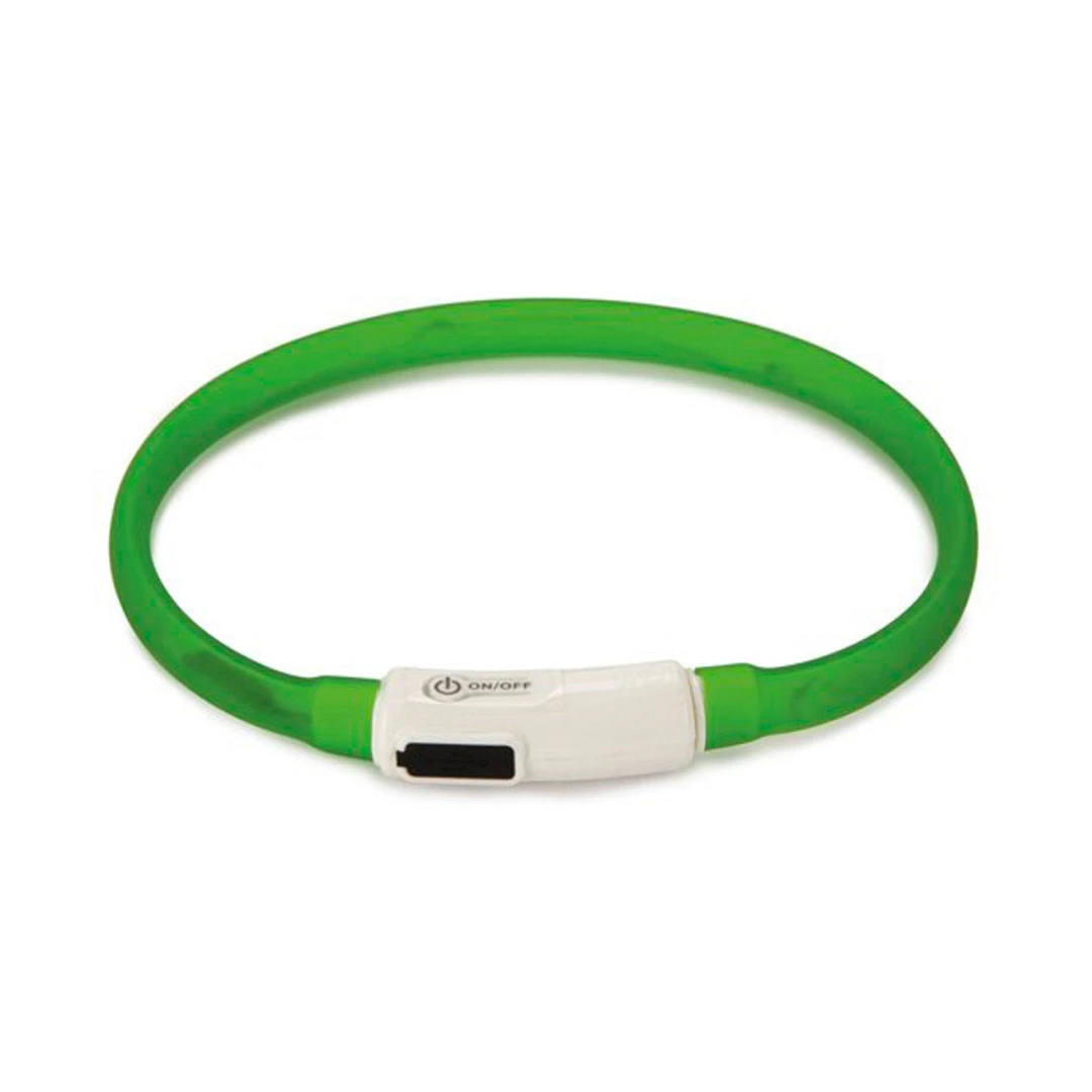 De Beeztees Dogini veiligheidshalsband is een lichtgevende siliconen halsband met usb aansluiting. Door de Dogini halsband kan je jouw hond eenvoudig in het donker herkennen en ook anderen kunnen jouw trouwe viervoeter goed zien. De verlichting van de halsband heeft drie standen: langzaam knipperend, snel knipperend en een continue verlichting. Zodra de verlichting verzwakt of het helemaal niet meer doet, kan je de halsband gemakkelijk opladen via de usb-aansluiting. Deze halsband kan je zelf op maat knippen.